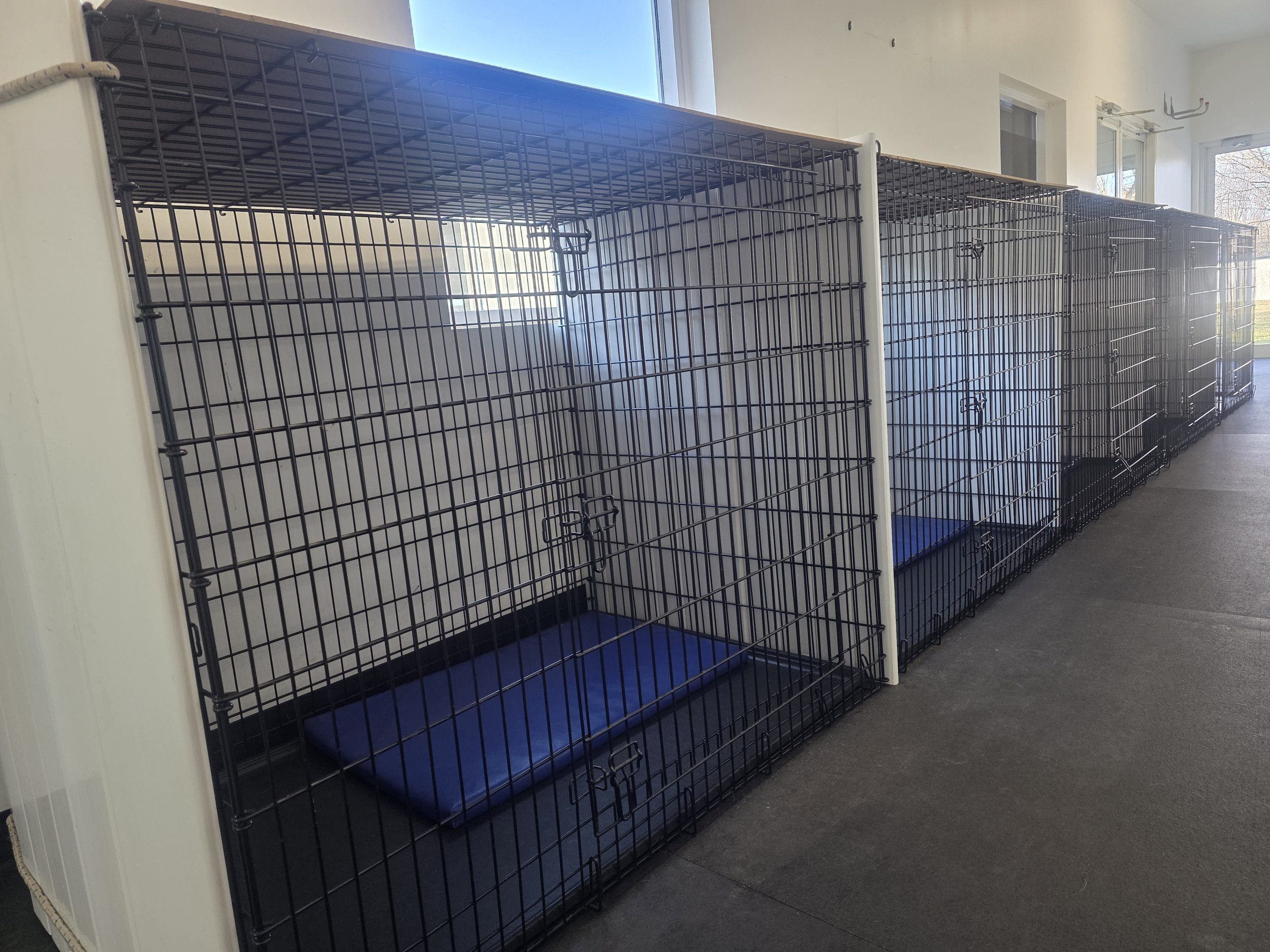 A quieter stay for small to medium guests. Secure and comfortable space designed specifically for our smaller guests. Ideal for small-to-medium breeds (Shih Tzu- Doodles) or small siblings who love to cuddle.